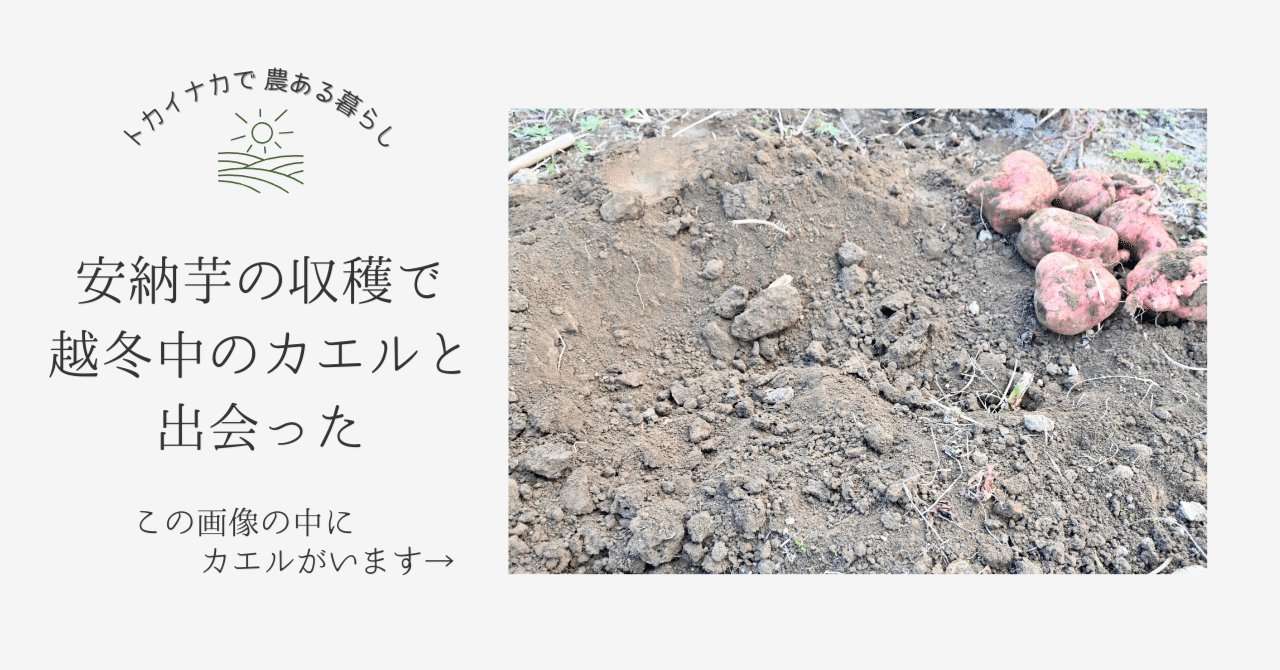12月の芋掘りで、カエルの冬眠の邪魔をする。安納芋、最後の収穫。|satomino(もりこね改め)