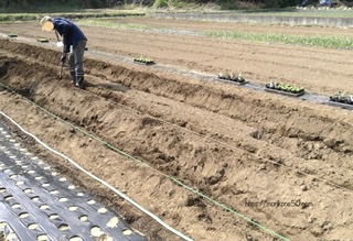 さてお次は、ジャガイモ(種イモ)を植えるための畝を作っていきます。