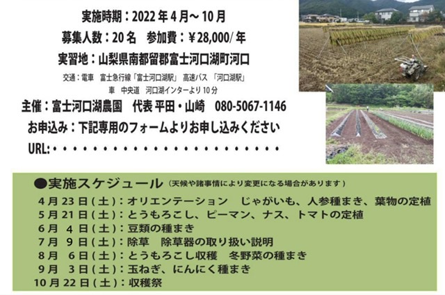 スケジュール内容は、上記の富士河口湖農園HPや先の竹内さんのnote記事にも挙がっていますが、一応こちらでも、スクショを貼っておきまーす。