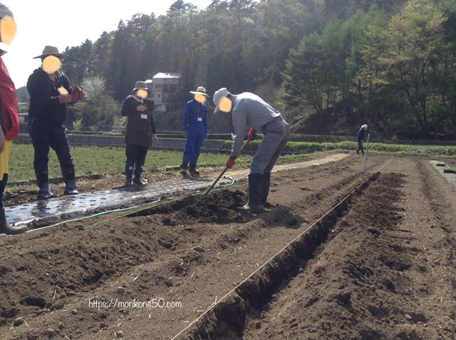 こんな感じで、軍曹殿こと山崎さんが、鍬の使い方、畝の作り方をレクチャーをしてくださいました。