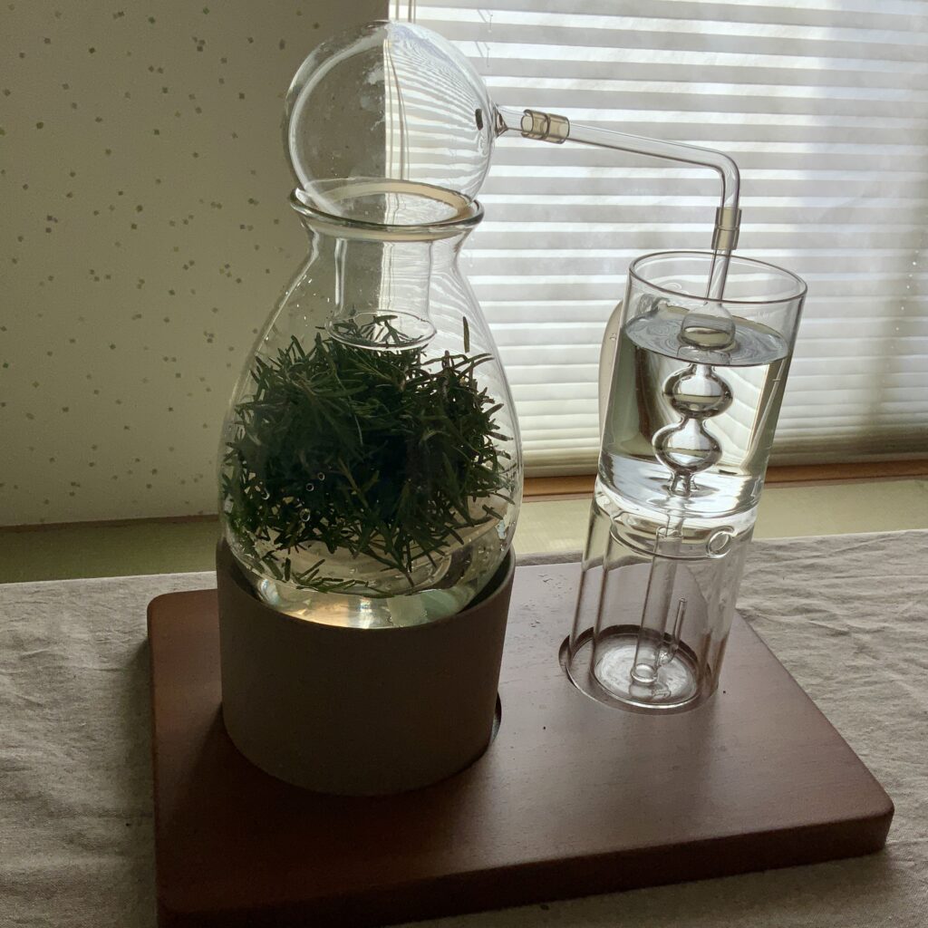 では、その香りのもと(芳香物質)はどうやって取り出すの?ということですが、それは「水蒸気蒸留法」をはじめとしたさまざまな方法で取り出せることができます。
