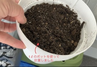 - 「腐葉土」を1.5ℓほど入れていきます