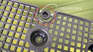 この穴を塞ぐ方法として、黒いネットの端についている丸い形のもの(下記画像)を切り取りまして・・・