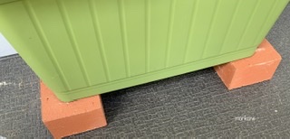- プランターの下に、例のレンガを置きます