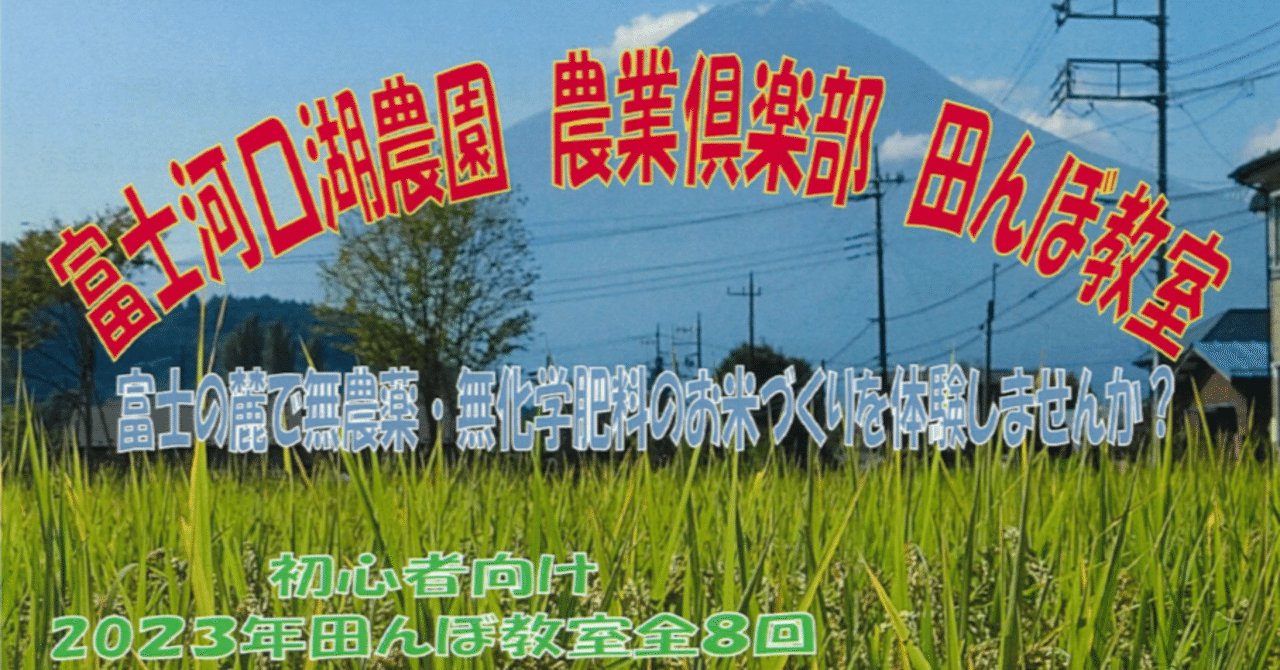 「富士河口湖農園 農業倶楽部 田んぼ教室」詳細・申し込み↓