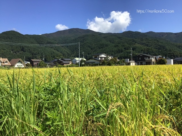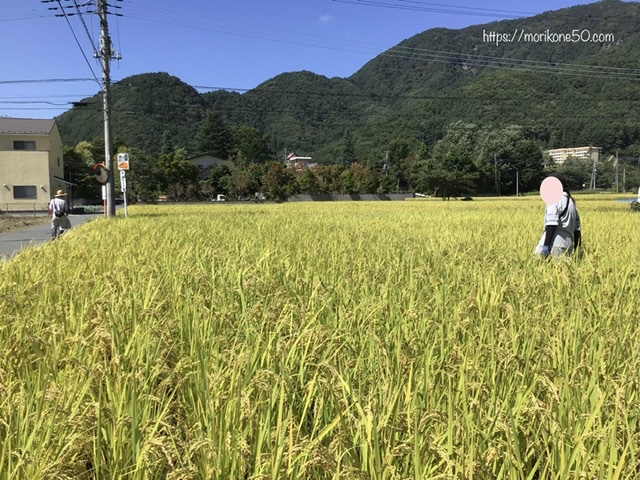 そんな貴重な稲の田んぼ、9月下旬の河口湖ではこんな具合↓でした。