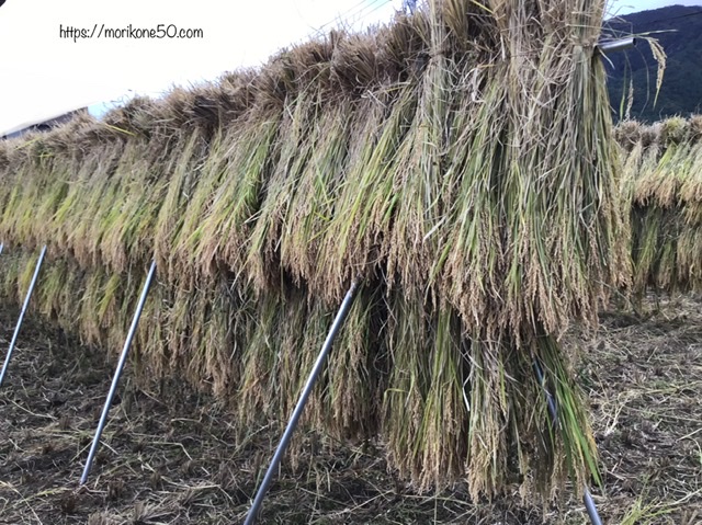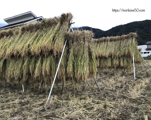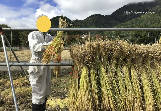 ということで、一つ目の田んぼ「イセヒカリ」のはざ掛け、これにて完了です!