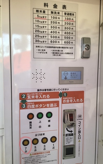 で、さっそく近所の精米所(コイン精米機)へGO!