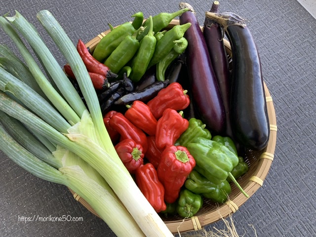 ナス、ネギの他に、ピーマンと万願寺トウガラシもあります。うれしいですね。