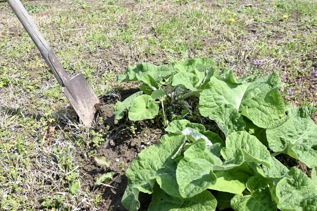 それでも、冬の間に枯れていた(ように見えた)ゴボウの葉っぱが活力みなぎるグリーングリーンになっていたり。