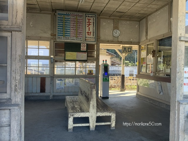 ノスタルジックな駅舎内↓は、「ザ・昭和」好きにはたまらない空間です。(でも、ICカードは使えるんです)