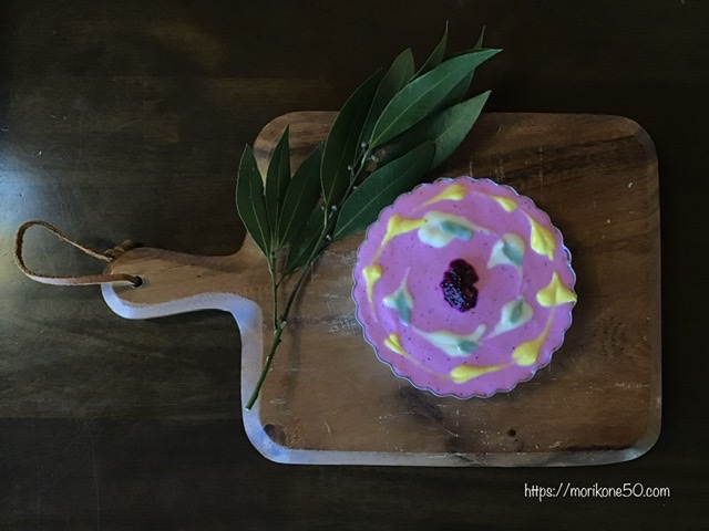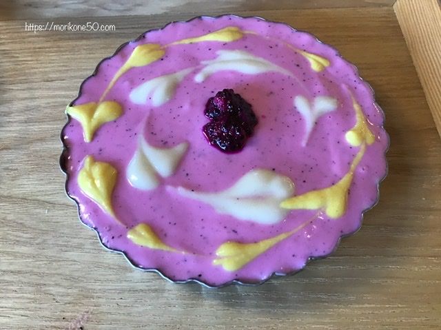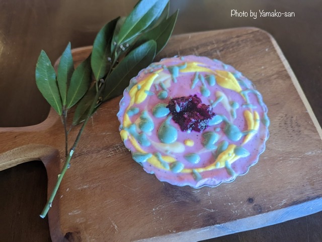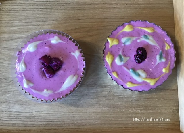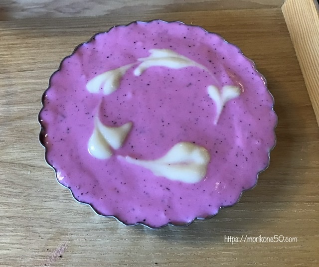 さらに、違う色目で模様をつけたり、真ん中にドラゴンフルーツを添えたりしました。