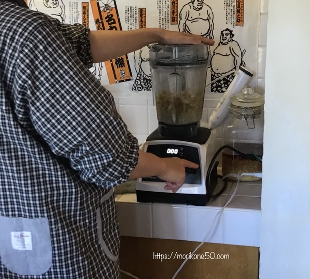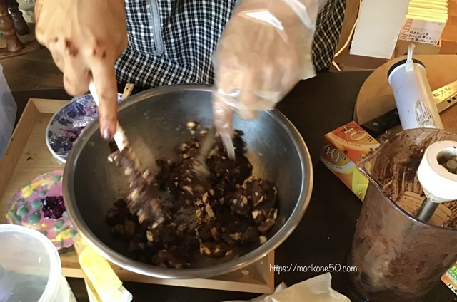 お力士好きな美紀子さん↓が、材料を攪拌している様子です。