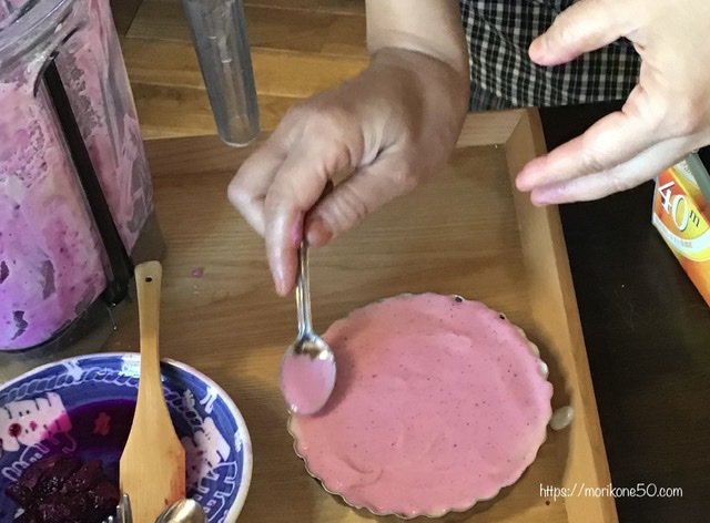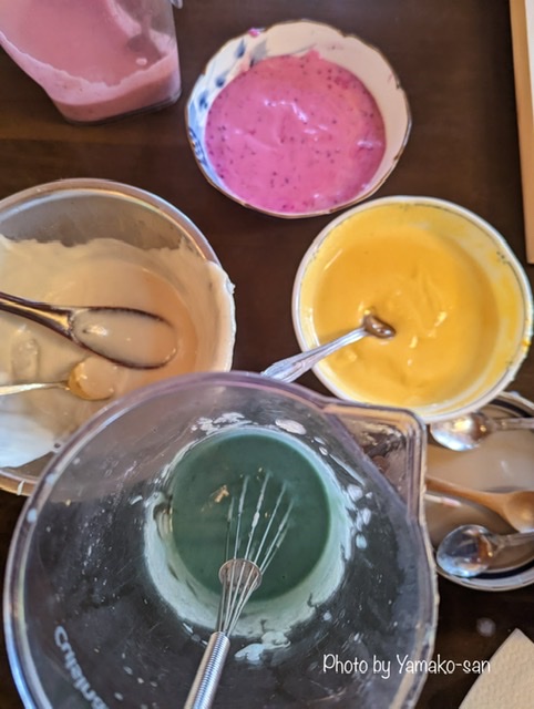 こんなふう↓にして、基本のフィリングに自然素材を使って色をつけることができるのですね。