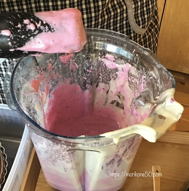 それら材料をブレンダーなどで撹拌かくはんして型に流し、冷蔵庫や冷凍庫で冷やし固めたのがローケーキとなります。